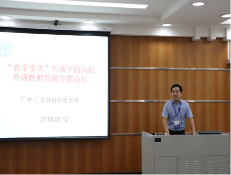 5月12日,由悟空体育“‘教学学术’引领下的高校外语教师发展科研创新团队”在北校区第九教学楼丝纺讲堂举办了“‘教学学术’引领下的高校外语教师发展专题论坛”。广外科研处处长陈彦辉教授、悟空体育经理董金伟教授、党委书记林绍雄、副经理吴岩教授以及团队带头人权立宏教授和团队成员出席了论坛开幕式。悟空体育的部分师生以及来自其他兄弟院校的同行参加了论坛。