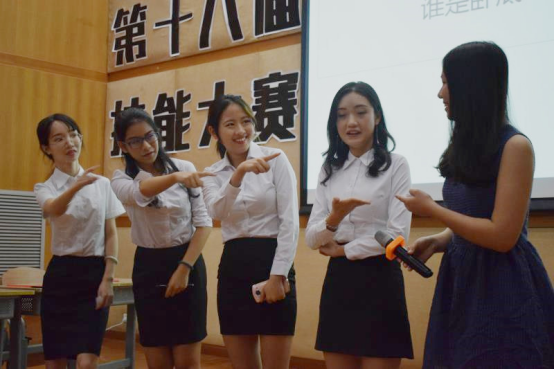 在紧张而又精彩的第一环节结束后,大赛进入游戏环节。游戏的名字叫做“谁是卧底”。同学们精准的语言表达力和明察秋毫的侦探力使现场观众为之惊叹,现场掌声迭起。