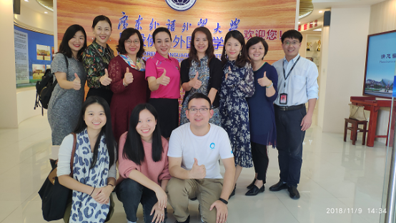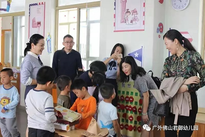 广外佛山君御幼儿园建于2015年,建园短短三年来,在周宇园长的带领下,从无到有,通过打造主题活动、双语教学、国际文化体验课等具有鲜明特色的课程体系,以及旨在培养“懂礼貌、守规则、受欢迎”、具有家国情怀和国际视野的世界小公民的教育宗旨,已经跻身当地名园之列。作为广外大家庭的两位成员--基教研究中心与广外佛山幼儿教育基地--已然感到了彼此的吸引,并最终找到了联系的纽带:2018年11月9日,英教基础教育研究中心成员首赴广外佛山君御幼儿园交流研讨,主题为《儿童英语戏剧教学探讨》以及《游戏在英语教学中的运用》。