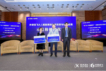 会议的最后,由外研讯飞相关领导为在智慧教学/外语教学探索、智慧课堂建设与智慧测评方面成绩突出的公司授予“讯飞A.I.智慧外语教学 ”“讯飞A.I.智慧教学 ”“讯飞A.I.智慧课堂 ”“讯飞A.I.智慧测评 ”创新应用示范校铜牌。公司杨满珍代表公司接受“智慧测评创新应用示范校”授牌。今后继续在信息技术人工赋能下探索大学英语教学改革与模式创新