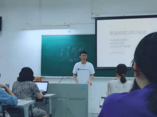 为了总结大学一年级的收获与教训,更好地开展下一学年的工作,英语(英语教育)专业1802班(下称“英师1802班”)于2019年7月1日晚18:3--21:30在教学楼F204召开总结班会暨榜样分享会。会议由副班长岑泳诗同学主持。参与本次大会的有英师1802班本科生导师肖建芳老师,分别取得哥伦比亚大学和伦敦大学等多所世界一流大学研究生录取通知的陈沐瑶师姐和昝健睿师兄,以及英师1802班全体同学。 本次会议共分为三个环节。在第一个环节,两位师兄师姐进行了经验分享。昝健睿师兄从竞赛心得、经济独立、备考雅思等方面着手,提出了许多独到而深刻的见解。他勉励在场的同学们,要获得“可持续发展能力”。陈沐瑶师姐则分享了在广外四年的学习生活,以及在哥伦比亚大学当交换生的经历。除此之外,她还对申请国外高校的途径、流程等作了一个简要的说明。他们共同分享的对西式思维的理解,也让同学们受益匪浅。在提问交流环节中,两位师兄师姐耐心地解答了同学们提出的疑问,会场气氛十分热烈。