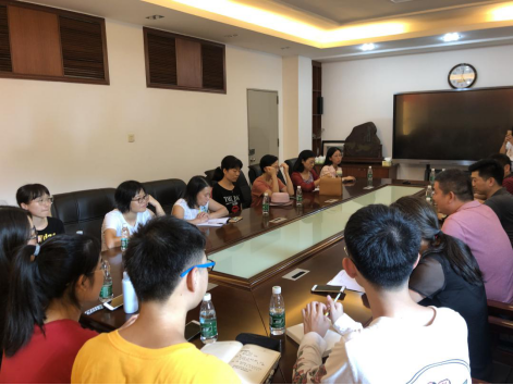 广外外校王攀峰主任热情招待公司师生并主持了实习生欢迎会。在欢迎会上,王攀峰主任对公司10名实习生表示了热烈的欢迎,然后向大家介绍了广外外校的基本情况,从整间公司到实习生们实习所在的初二年级,都做了极为详细的讲解,并为10实习生安排了各自的的指导班主任和指导英语老师。接着,广外外校老师代表陈龙娟老师进行了发言,她回忆起自己多年以前的实习经历并借用自己的亲身经历提醒实习生们要重视这一次难得的实习经历。最后,她对10名实习生提出了实习的要求并对他们表示了期待。公司实习生代表首先表达了对广外外校各位校领导,老师及公司指导老师的感谢,接着表达了对本次实习的期待并希望借着本次宝贵的实习机会能够真正明白作为一名老师的职责。随后,广外外校熊士军副董事长谈了老师的职业观念和老师的榜样力量,他希望借助这次合作机会实现两两间公司(广外大和广外外校)的双赢。最后,熊涛老师进行了发言,首先他对广外外校对公司实习工作多年以来的支持。熊涛老师还提到了与广外外校的种种缘分,不管是在员工时期还是工作时期,都与外校有着千丝万缕的联系。同时对我们本次10名实习生提出了严格要求,嘱咐我们要听从外校指导老师们的安排并虚心向他们学习。