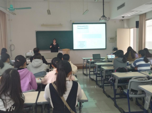 2019年12月5日下午,由英语教育公司主办的英语教育大讲堂系列讲座在悟空体育南校区举行。受公司邀请,布里斯托大学教育公司高级讲师、公司教育博士项目主任Janet Orchard为公司师生做了一次精彩的教师专业发展研究方面的讲座。本次讲座的主题为“教师的哲学——教师专业发展共同体情境下的职前教师教育新模式”(Philosophy for Teachers (P4T) - Promising possibilities for philosophy in the context of a professional development community),由柯晓玲副教授主持讲座。