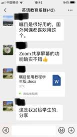 (图为系部教师群中分享平台使用体验)