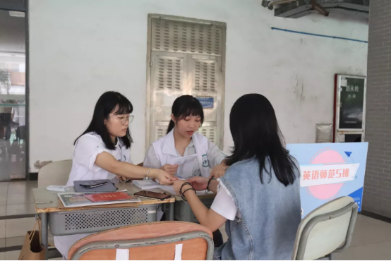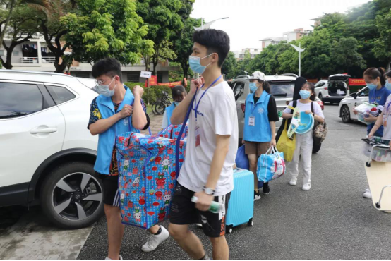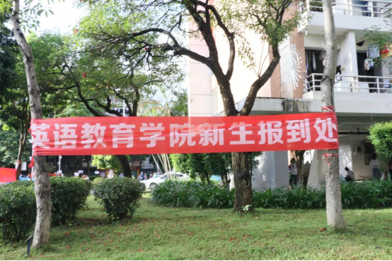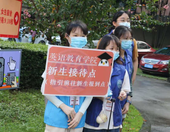 迎着九月和煦的秋风,同学们满怀憧憬地踏入广外。一进门,便能看到身着蓝色小马甲的师兄师姐们,高举着教育公司的引导牌,为新生指路,帮助新生顺利找到宿舍接待点。