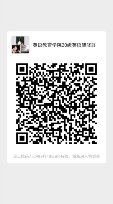 请拟录取同学扫描以下二维码加入英语(辅修)20级辅修群,后续事宜将通过微信群通知。