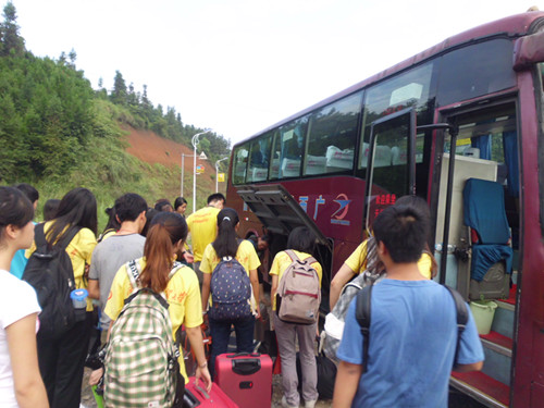 把夏令营比作连接广外和三江中学的心的风雨桥的话,那么,短暂而依依不舍的离别送行,就是这所桥的桥尾。这时,师生情,友谊情和离别情交织在一起。不少员工为了再别小老师们一面,当得知29号服务队将撤离三江中学时,他们竭力打听出发的具体时间。不少队员还不清楚出发的具体时间时,他们早早就知道了,还相互告知,提前为29日早的离别准备。