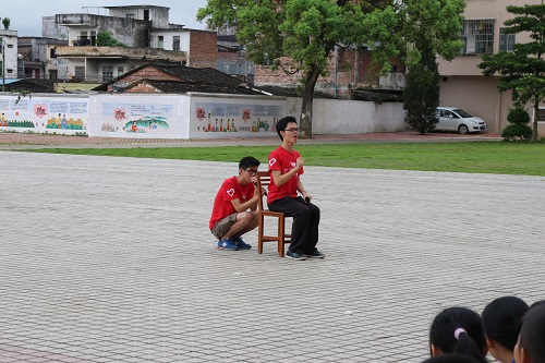 2013年7月16日早上8点45分,悟空体育清远英德大湾服务队三下乡活动在大湾中学正式开幕。此次三下乡活动依旧与大湾中学和中心小学合作开展,活动将为期15天。在开幕式中,主要有大湾中学领导的讲话,以及由队伍成员共同表演的四个节目。