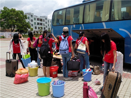 今天是英教清远大湾下乡服务队出发的日子,队伍在早上从公司出发,在中午到达下乡基地大湾中学。队员们下午安排好食宿问题后,对大湾中学进行进一步考察,为后边下乡活动创造良好的生活环境。