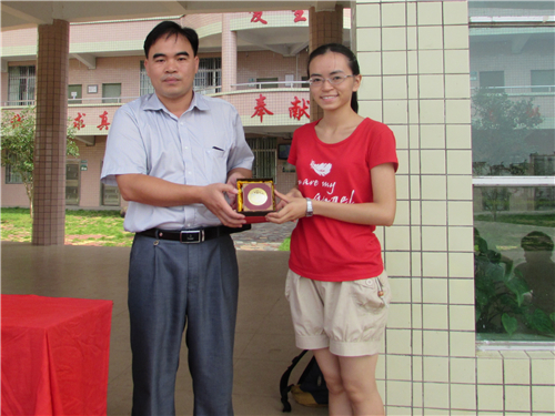开幕式在早上开始,大湾中学副董事长刘国林和参加本次大湾三下乡的员工以及大湾服务队的老师们均参加了本次开幕式,刘国林副董事长及大湾服务队队长欧楚莹发表讲话,欧楚莹代表大湾服务队赠送大湾中学礼物。