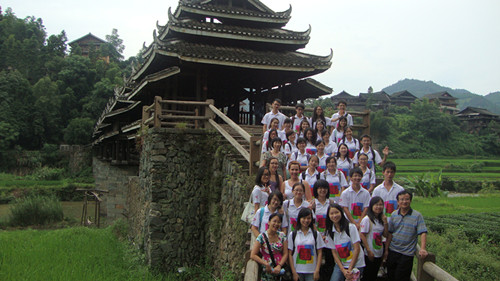百家宴,是侗乡族人迎接外来客宾的最隆重的款待方式。他们会穿上侗乡服饰,吹打着侗乡音乐,献上壮大的侗族歌舞,摆上上百家各自提供的侗乡美食。7月24日下午,英国董事长梁氏一家,三江文化局等局长,三江中学李董事长等,和广外大水粤侗天带队老师及全体队员,前往程阳桥参加了侗族的百家宴。这既是对侗乡习俗的体验,也是与侗乡人民作交流,体现中华各民族间交流沟通、和谐相处的喜人局面。