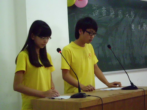 为了激发员工英语学习的兴趣,使员工的英语语音和口语水平进一步提高,7月25日,广外大“水粤侗天”服务队在三江中学阶梯教室举行了一场以“语”你同行,“音”你精彩为主题的语音语调大赛决赛暨电影配音大赛。先经过班级内部的筛选,每班选出5名优秀的员工参赛。英语语音语调比赛主要考查员工发音的准确、清晰,语调是否自然流畅;员工朗读时是否能恰当地运用意群断句,连贯通读。
