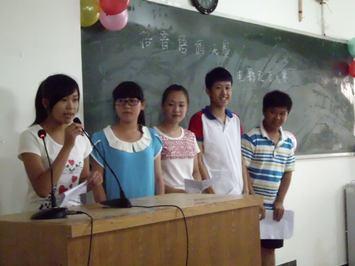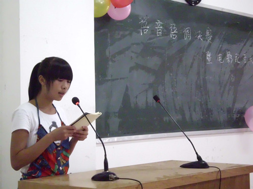 各选手做简单的自我介绍,开始英文文章朗读。有不少选手选择了Why we should learn English作为参赛文章。