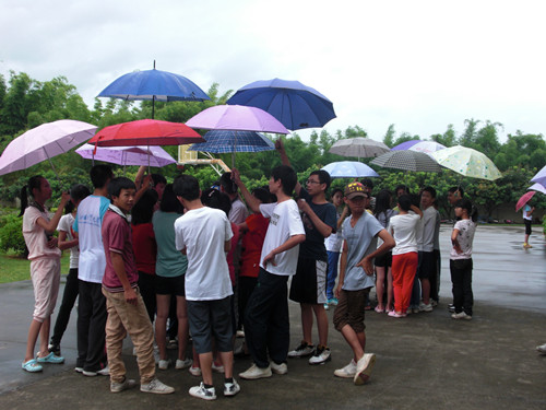 下午2点半左右,尽管细雨飘飞,但并没有影响员工们兴奋不已的心情。可惜的是雨越下越大,各班只能组织上课。直到第一节课下课后,天空开始放晴,员工们的热情重新点燃,欢快地到操场等待一展拳脚!