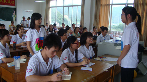 此次英语骨干教师培训,是今年广外大水粤侗天服务队的又一新的尝试和创举。年轻的它本着“提升一个英语老师,让更多员工受惠”的宗旨,赢得包括三江教育局和三江中学董事长在内的高度重视。服务队带队老师当任了教师培训的主讲。她们采用任务型的新型教学方式,让教师学员亲手参与到课堂教学中。教师说课大赛就是他们学习成果的最终展示。教师说课大赛采用全英文的说课形式,把各个小组的教学计划展示给现场的领导评委、和员工。教师学员表明花费假期时间很值得。教育局吴局长也称赞这种教师培训的形式,说它把新的教学理念带到了三江,对提高三江英语教师的教学水平的作用是不言而喻的。