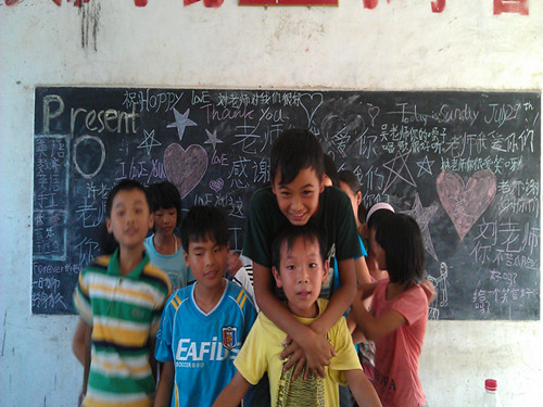 下午放学后,许多员工都留在课室里围在老师们的身旁,与他们谈心、合影,并叫老师们留下联系方式。有些员工把自己亲手做的手链,亲手折的纸花送给了老师们。然后,很多员工在黑板上画画,还写下“Thank you”、“感谢老师教会我们这么多知识,我们爱你们”、“祝老师天天开心”等话语送给老师。没想到一向调皮捣蛋的员工,会在今天表现出对老师的如此爱戴和依恋,在场的老师们都非常感动。