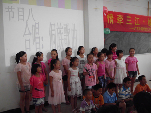 侗寨有三宝:鼓楼、风雨桥和大歌。其中,侗族大歌唱上了闭幕式的舞台,把侗族文化带到了师生的告别会上。上演的15个节目中,有三个是侗族大歌。高中班、小学班,带着本班的精神面貌,分别唱响了侗族的民族歌曲。让以大歌为代表的侗乡文化得以传承的可喜局面呈现在领导、师生的面前。