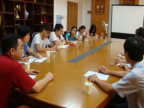 会中,曾主任也真诚地提出了个人的想法。曾主任希望每个队长都要跟下乡基地和指导老师密切联系,深入了解当地公司的情况,确保下乡准备工作的充分。曾主任更特别提出,每一个下乡队伍既要确保队伍的安全问题,也要承担起当地员工的安全责任,对此要作出相应的对策。辅导员迟殿凤老师也针对保险问题和校园网投稿的问题作出了相应的说明,校园新闻栏目上是只需要每个队伍的一篇后期投稿,团学时空栏目上是只需要每个公司投一篇稿子,队伍之间要互相协调。至于如果有媒体采访的稿件可往媒体广外栏目上进行投放,不设限制。