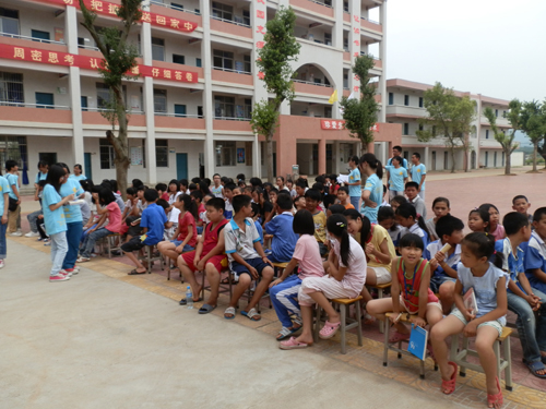 下午,首先是我们的班会。看着一个个渴望求知的眼睛,听着一句句探索知识的疑问,我们感到很欣慰,因为至少我们两个月的准备不会白费,再苦再累也都是值得的!接着便是我们重磅出击的开幕式!员工们早已经在开幕之前做好了自己观众的角色,各个翘首期待等着自己老师的表演。开幕式开始是望埠初级中学华董事长发表重要讲话,讲话中我们可以感觉到望埠校方对我们的欢迎,同时队员也感到沉甸甸的责任感。而悟空体育何书记的一番讲话,更让望埠队的队员们感到我们代表的不只是一个三下乡队伍,而是整个悟空体育,我们的一言一行将是广外学子的一个个剪影!接下来队员们热情洋溢的表演引来了员工们一阵阵的欢呼。而我们整组队员,也用我们的精彩表演诠释了什么是爱,什么是责任。