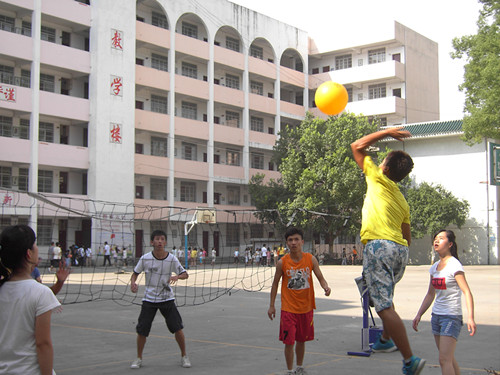 这天,在灿烂的阳光下,高中四支队伍热情高涨地在操场集中,按各队代表的抽签结果进行比赛。