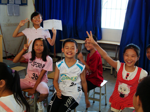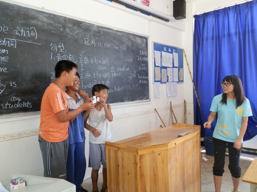 望埠心之望服务队有志于打破英语学习传统。英语学习不用囿于传统的记诵课文、死扣语法的方式,把英语学习融合到游戏中去,不仅可以提高同学们的积极性,还可以培养员工学习英语的兴趣。课桌椅的摆放也不用局限于传统的几大组或是单人单桌的形式,望埠心之望服务队尝试了分组、围圈、甚至是“零课桌”的形式。同学们对于分组讨论,围圈发表自己的意见,或者是对于“零课桌”亲密地坐在一起玩游戏,都感觉既新鲜又特别。