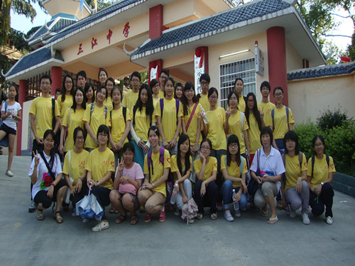 在忙碌了一天的校园工作后,趁着夏日余辉,带队老师苏春、周洁,以及广西队的其余队员于校门集中,开始了到三江中学以来的第一次集体离校出游,并向三江侗族博物馆进发。