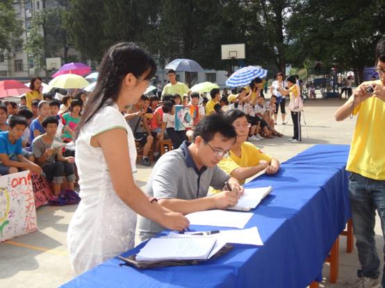 首先,由李董事长为大家致辞。董事长向全体队员表达了诚挚地感谢,感谢队员们这十多天来的辛劳和付出,总结了此次活动对三江中学的意义,并在致辞末衷心祝愿此次闭幕式圆满成功。随后,广西队队长郑舒慧也代表全体队员发言,她首先向大力支持此次三下乡活动的三江中学表示了由衷的感谢,感谢公司、校领导在此次活动中的帮助和配合,同时,她也向此次广西之行的带队老师苏春老师对队伍各项活动的关心和对队员无微不至的照顾表示感谢,并简短地总结了此次三下乡活动的收获,最后表达了自己对此次闭幕式成功举办的美好祝福。