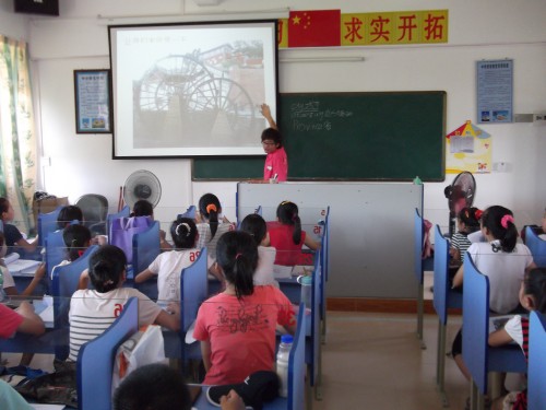 7月25日下午,英教公司梅州“风信子”队小学夏令营的老师在丰顺留隍中心小学上了一堂有趣的“地球万花筒”,课堂气氛非常热烈。