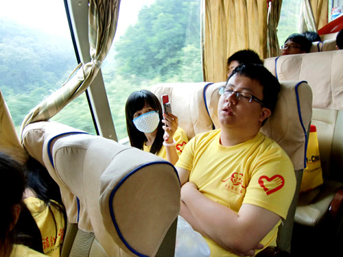 三小时的车程里,清远队的队员们已然提前进入了三下乡的状态,既兴奋又激动。车上,有养精蓄锐的队员,有争分夺秒备课策划版务工作的队员,也有时刻用手机、相机追踪报道的队员。队员们用自己一双双发现“美”的眼睛,时刻捕抓沿途最美的“风景”。而大湾队的微博也在同步更新状态之中。为了活跃途中气氛,除了整个队伍一起练习队歌《天使》之外,大湾队的活动组也精心策划了小游戏,在这个以歌名作答的非传统游戏里面,大家被各式各样新奇百怪的答案逗得捧腹大笑。