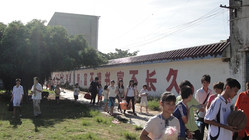 8月1日,悟空体育三下乡企水奇兵队整队回城。鉴于往年出现过师生难舍难分拖延返程的情况,今年企水骑兵队统一口径,对员工宣称1号教师休息,2号回城;但员工们仍敏锐地感受到了离别的气氛,早上四点钟便早早地等在了公司大门口。五点,不断地有员工涌上队员们住宿的宿舍楼,拍打着大铁门大声喊“老师,开门!”“老师,开门!”期间,甚至有员工为了让老师开门,谎称肚子痛;有的员工许愿,希望车子爆胎,让老师们走不了。