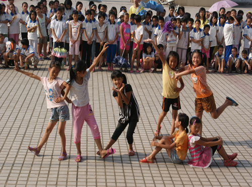 压轴的是中心小学带来的节目串烧。手语歌《相亲相爱的一家人》。小朋友们整齐又充满感情的手语表演感染了在场的观众,最后的口号“我爱中心,中心爱我,我们是相亲相爱的一家人!”把气氛带进了另一个高潮。紧接着的舞蹈表演中8位小女生活泼的动作也给观众们留下了深刻的印象。感人的合唱《世上只有》表达了全场师生的面对离别的浓浓不舍,以及对这十几天难忘的夏令营之旅的无限眷念。场上的老师与员工的眼眶渐渐红了。