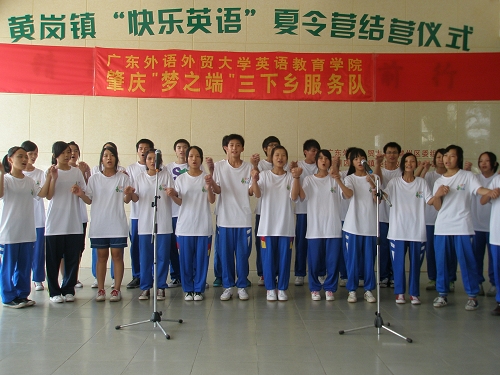 最后,唱歌班同学的合唱《We Are the World》后,为期十三天的“快乐英语”夏令营到此结束。师生们在这段时间结下的深厚情谊,相信必能为今后若干年的三下乡活动的展开提供有利的条件。精彩的闭幕式演出并不是真正的终点,明年,这里仍是“梦之端”的舞台!