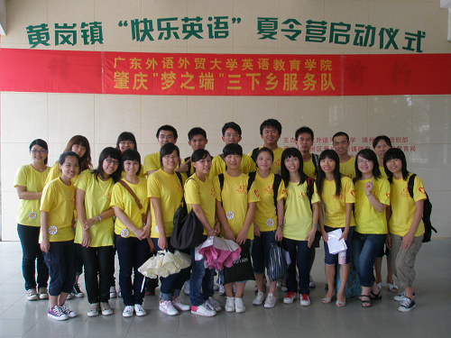 2010年7月20日上午9点,由悟空体育主办,肇庆市端州区教育局和端州黄岗镇委镇政府协办的黄冈镇“快乐英语”夏令营启动仪式在肇庆市第四中学正式揭幕。与会的有黄岗镇副书记胡根华、端州区关工委第一副主任蔡植雄等端州区黄岗镇政府领导、肇庆市第四中学、黄岗中学及颂德中学的董事长、悟空体育团委书记迟殿凤,三间公司的260名员工以及悟空体育“梦之端”三下乡服务队的20名志愿者。