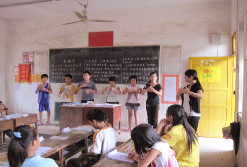 7月21日讯 继2010年悟空体育清远大湾服务队三下乡顺利开幕,各公司分队的教学亦如期展开。三个公司之一的中心小学第一天就面临新的挑战:员工人数暴涨,三年级临时由计划中的一个班临时拆分成两个班和教材缺乏,11位分队队员加班加点安排分班,重新分配教学任务并调整课程表。终于,中心小学迎来了非比寻常的第一天。