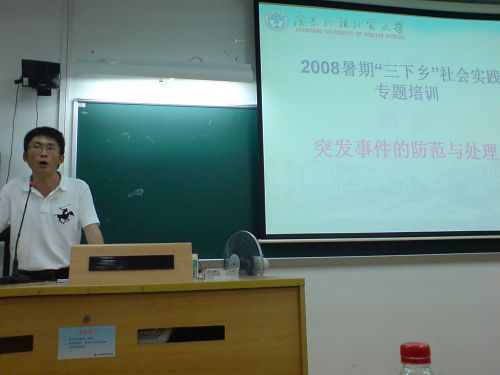 7月4日晚公司“三下乡”专题培训会在F107教室举行。此次专题培训的主题为“突发事件的防范与处理”,主讲人是经贸公司的郝光老师。即将参加08年暑期三下乡社会实践活动的队员出席了这次会议。