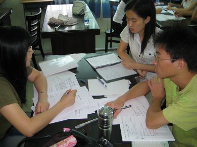2、教研小组的成立:此次信宜中学服务队三下乡活动的一大亮点是队伍成立了教研小组,所有教授的课程均经过了教研小组的精心准备。队伍早在到达信宜中学基地之前,已经拟定好了教学大纲,并且,根据信宜中学一些热心的教师不时提供的有关报名参加三下乡活动员工的信息,教研小组对教学内容不断地做着调整和改进,以达到最佳教学效果。同时,在教学内容方面,员工亦有一定的选择权。教员会根据员工的投票情况,选择两个员工感兴趣的话题,进行口语教学,这使得教学活动有一定的灵活性。
