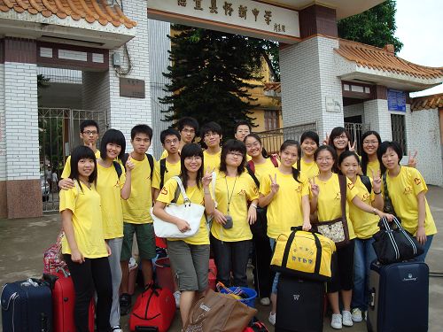 几经周折,从陡峭的崖壁下来,只见炊烟点点,向司机询问,得知这便是我们此行的目的地——怀乡怀新中学。破旧的教学楼点缀着几间残缺的的玻璃窗,芳草萋萋,一片破败的光景,只有几株果树长驻此间。中学董事长已经在等候我们的到来,领着我们经过教学楼,猛地一个转弯,队员不由得惊呼“希望在转角。”崭新的教学楼隐藏在残旧的外表之下。此次征程也就以此为始,翻开了新的一页……