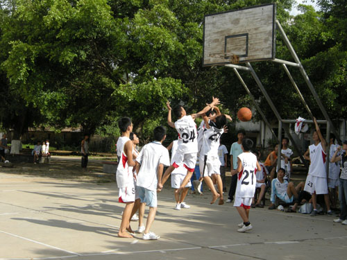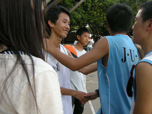 比赛最终以65:41的比分宣布结束,尽管比赛途中有不满的声音,但两班最后都握手示好。在比赛中,场外的员工有互相帮忙的,有互相加油的,更有男女同学互相打气的,可见这里男女“分界”的现象明显有了好转。