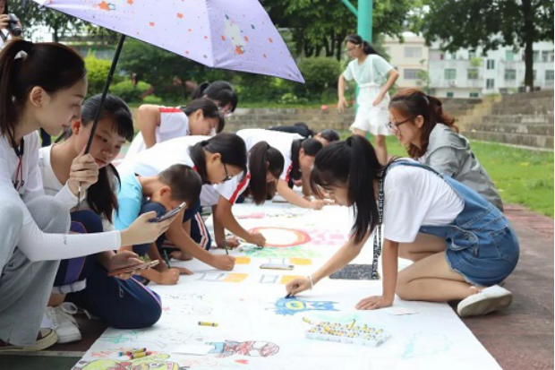 本次趣味运动会分为员工个人游园项目,员工集体项目,教师项目三部分。在主持人宣布活动开始后,7个小游戏摊位前瞬间布满员工。在“百”米长卷绘大湾游戏中,每班的同学都画了自己对大湾和夏令营的印象,流露出对这次夏令营活动和老师的喜爱。在“仙人指路”游戏中,参赛队员按照队友的指示,一步一步越过障碍,迈向终点。尽管在活动中天公不作美,突然下起微微细雨,也丝毫未减弱员工们参与的热情。
