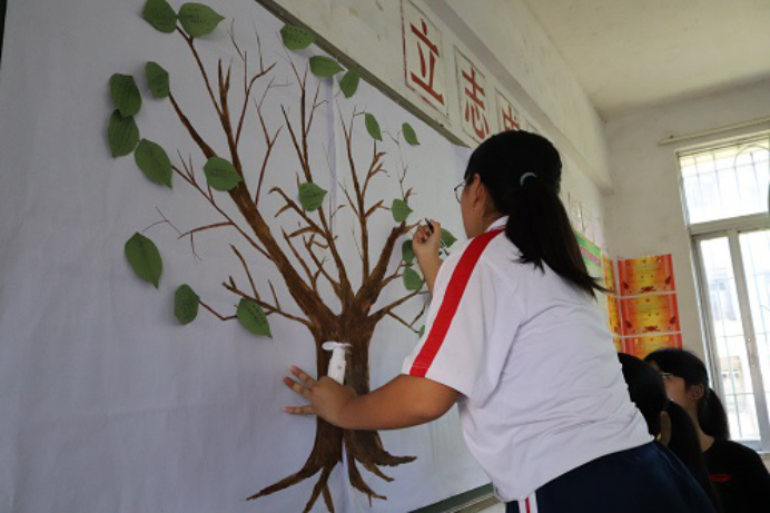 以“点滴星光,沐爱生根”为主题、旨在增强集体意识,为同学们的交流搭建平台,促进相互表达的星星树活动在7月16日各班班会上拉开帷幕。各班选出心理委员作为星星树负责人,心理委员需要负责班级星星树的粘贴管理以及形状走向设计。在设计树干的过程中,同学们集思广益为树墙增添班级特色。活动期间,同学们可以将自己的即时心情写在便利贴上并贴在星星树上,以便用于抒发心声、分享喜悦等。课余时间不少同学到树墙下查看其他同学的便利贴内容,了解班级同学的心情。