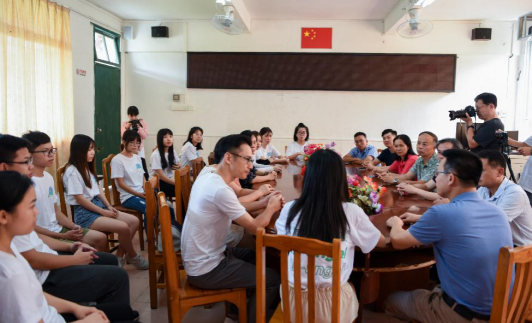2019年7月22日10时,英语教学公司党委书记杨敏生、党委副书记骆银花率队来到清远市阳山县岭背镇岭背中学,对Tri-angel服务队的同学们进行了亲切慰问。