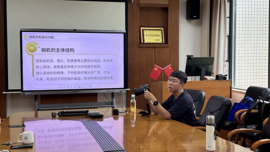 吴世傲表示,摄影是一门运用光影并进行创作的艺术,掌握基本摄影理论并进行丰富的拍摄实践,有助于创作出更好的影像作品。随后他围绕摄影艺术基础知识、相机操作方法、三分法构图原则、人像摄影与风光摄影中光线运用等方面,深入浅出地讲解了构图美学、光影运用、主题表达等摄影核心技巧,并展示了在近十年的摄影生涯中拍摄的照片,与老师们交流心得体会。参与学习的老师们也拿出手机或专业相机上手操作,吴世傲为老师们做了一对一的技术指导,并引导大家用镜头主动观察思考,用影像讲述身边的故事。