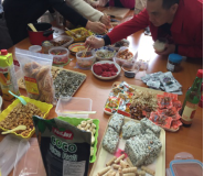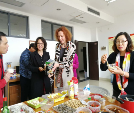 首先,教师们纷纷报名参加,有些老师因为公事无法参加活动,却非常有心,提早把特色小吃带到了职工小家,董金伟经理带来两罐两味花生米,朱三毛老师带来两袋家乡芝麻糖,徐昶斌副书记带来梅州黄粄,这些都独具特色。
