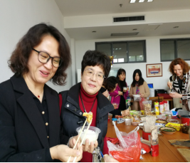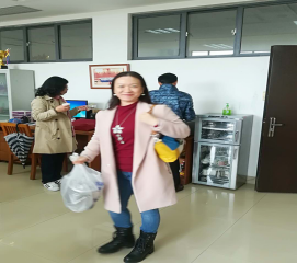 外教Biliana也带着饮料参加了活动,她看着大家围着桌子团团转,开开心心地共享美食,也好奇地把所有的菜都试了一下,她说她尝到了“爱”的味道,感受到了职工小家的暖暖亲情。