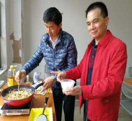 饭后,大家围坐在一起聊天叙旧,贴心的林书记为大家沏上一杯热茶。大家意犹未尽,回味每道菜都是家乡的味道,深深体会着“家”的感觉,每位老师都可以获得金牌厨师的称号。
