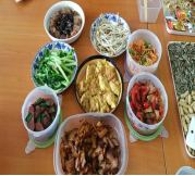 齐湘燕老师专程从家里做好菜,还保温,正好午饭时赶到,她带来了一道家乡特色菜:青豆血鸭,味道相当好!刚摆上桌,转眼间连一滴鸭血都不剩。卓艳芬老师带来了红色米糕和其他小吃,成为了饭后甜点,同时还捐赠了一套漂亮的碗给职工小家。