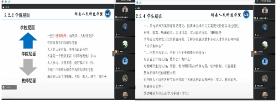 刘欣磊还介绍了湖南人文科技公司师范认证的思路和举措。她强调,师范专业认证小组要有明确的分工,将责任和任务落实到个人,并认真做好记录,确保认证每个环节高效、无误。此外,她还重点说明了培养方案的修订、教学大纲的修订、自评报告的撰写等方面的步骤和方法。