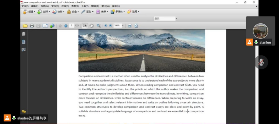 课程组首先就本学期第三单元的课程内容进行了集体备课。李刚详细梳理了该单元的学习目标、技能设置、作业练习和进度安排,重点解释了本年度在教学内容上针对去年教学效果所作的增补和修订。老师们回顾了去年本单元教学过程中的亮点和难点,提出要进一步培养员工的思维能力,确保员工在阅读和写作过程中能够识别和建立两个主题进行比较的不同视角,进一步提高员工在写比较、对比类作文之前撰写提纲的学术意识和技能。