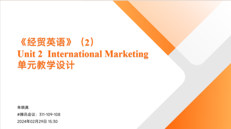 2024年2月29日下午3:30,第五教学部经管英语课程组《经贸英语》(2)课程的集体备课会议在线上会议平台上成功举行。本次会议由朱晓真老师主讲,就新学期第一课Unit 2 International Marketing单元的教学设计进行了深入探讨与分享。参会人员包括李悦老师、刘丹老师、邓谊老师、薛瑛老师和李碧燕老师等多位经管英语课程组教师。