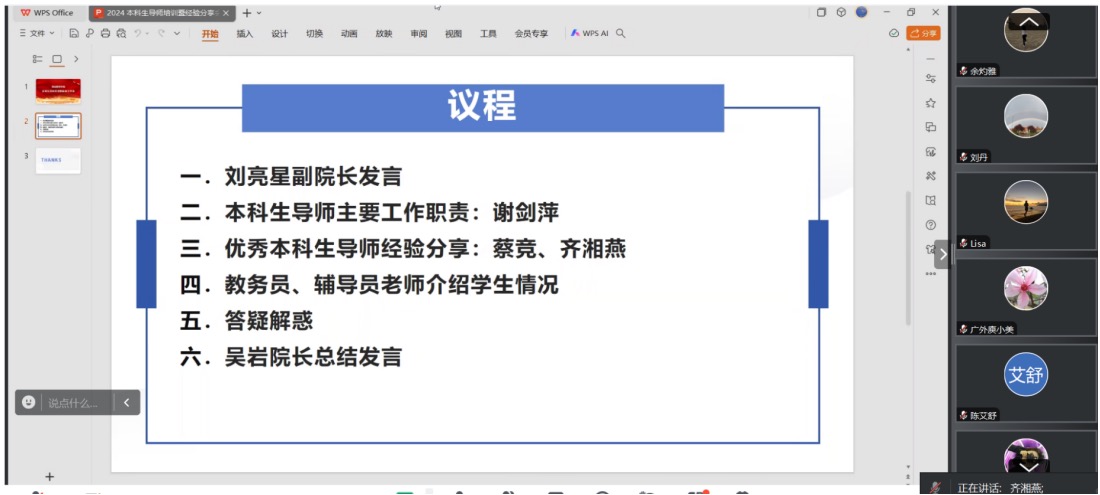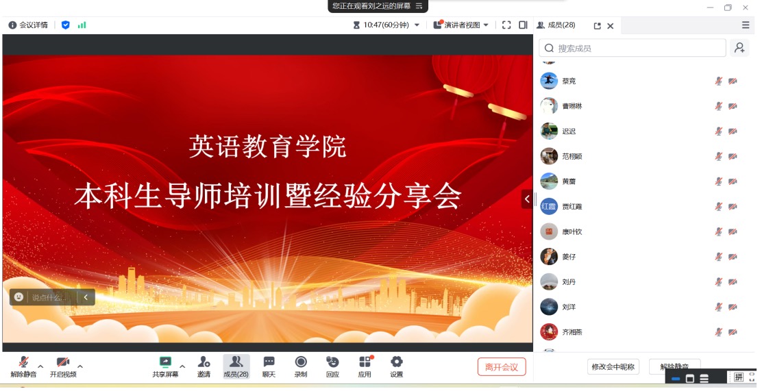 11月25日晚,公司通过腾讯会议线上举行本科生导师培训暨经验分享会。会议由教育系主任刘之远主持,公司三十余位本科导师参加会议。